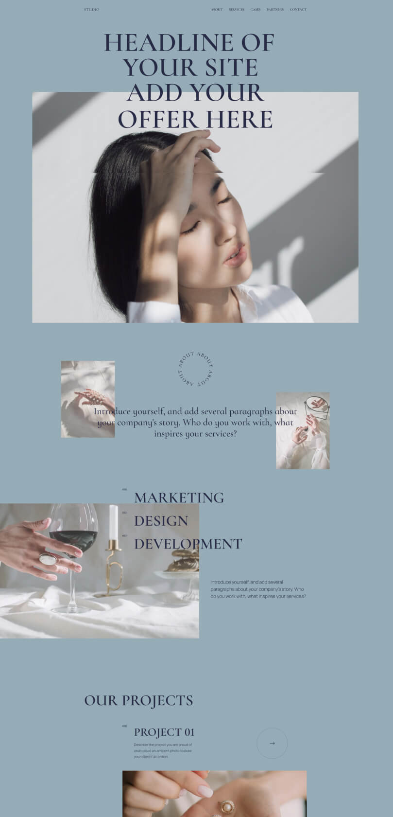 Encontre centenas de modelos gratuitos para empresas, portfólios, eventos, blogs, etc., criados por designers profissionais. Pode alterar totalmente qualquer modelo, combiná-los entre si e criar uma página única.